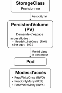 Les modes d’accès définissent comment un volume persistant peut être monté et utilisé par les pods.